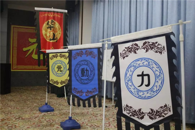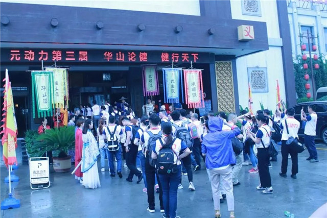 “兵马未停”,只听车内欢呼一片。转眼窗外,客栈门前元动力字样的锦旆随风飘扬,一众大侠伫立门前,列队相迎。侠客风情的客栈,古朴的装饰一下子就点燃了大家的热情。